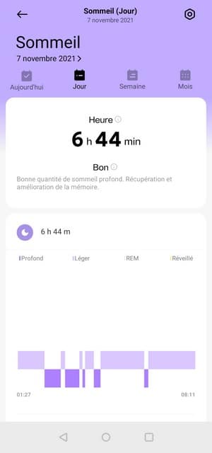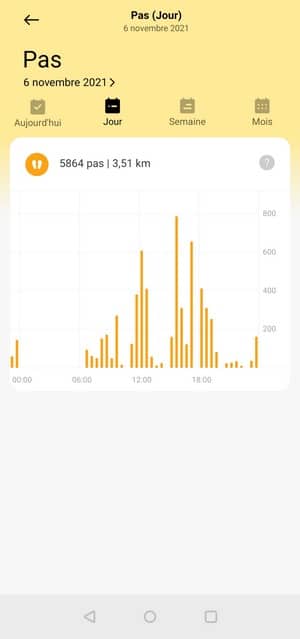 Toutes ces données sont synchronisées sur votre smartphone et mise en forme au sein de l'application Xiaomi Wear. Vous avez accès à différentes statistiques et des graphiques, jour par jour, par semaine ou même par mois. Je trouve que l'application Xiaomi Wear est agréable à utiliser et réussie d'un point de vue esthétique.