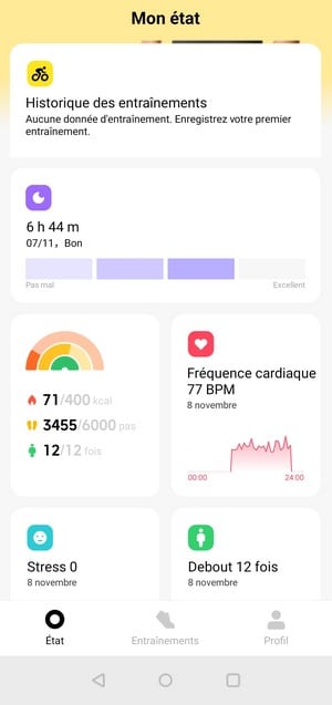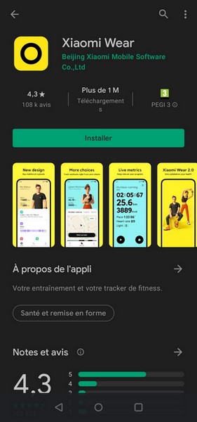 C'est par l'intermédiaire de l'application Xiaomi Wear qu'il faudra réaliser la connexion avec son smartphone et utiliser la montre au quotidien. Si c'est la première fois que vous l'utilisez, il faudra commencer par créer un profil, en indiquant son poids, sa taille, etc. Ensuite, l'association entre le smartphone et la montre connectée s'effectue facilement en quelques étapes.