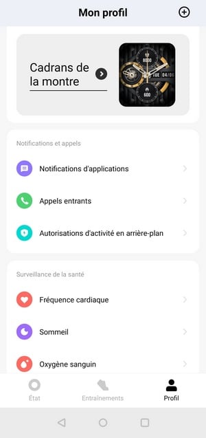Au sein de l'application Xiaomi Wear, une flopée d'options vont permettre de personnaliser la montre. Ce sera l'occasion de modifier le cadran, de gérer quelles sont les applications autorisées à envoyer des notifications sur la montre, etc. Sachez que l'écran de la montre s'allume lorsque vous levez le poignet, et que cette fonction est paramétrable dans l'application (notamment la sensibilité).