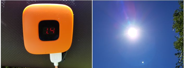 Maintenant, voyons ce qu'il vaut réellement dans la pratique ! Malheureusement, je n'ai pas pu me déplacer à Nice ou Marseille ou même en Martinique pour avoir un soleil de plomb et faire chauffer au max le panneau solaire, on se contentera du soleil Normand qui est très plaisant cet été ! 🙂