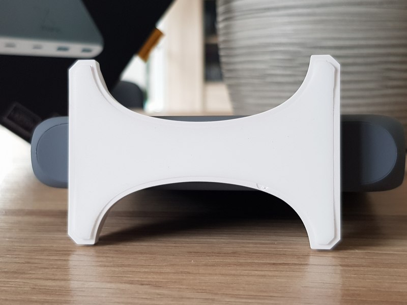 Le dessous de la base est totalement anti-dérapant, ce qui lui permet de bien se maintenir en place sur le bureau. Compte-tenu de la forme du hub, il peut-être orienté soit face à vous, ou alors vers le haut en fonction de vos besoins. Potentiellement, le hub peut être utilisé sans sa base, en le posant à plat directement.