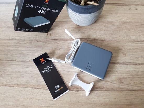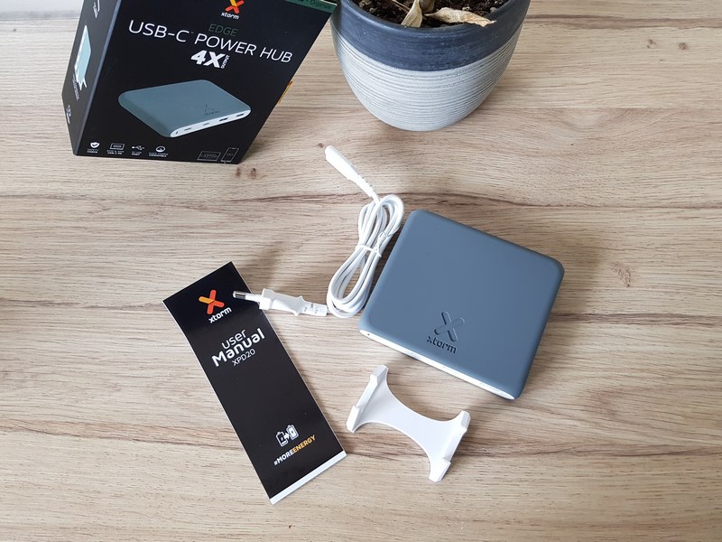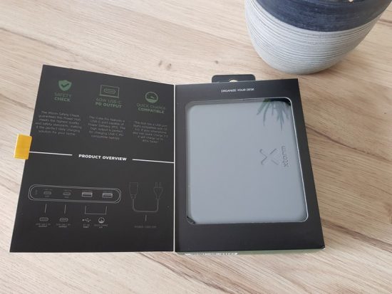 Alimenté par un simple câble, le boîtier Xtorm Edge est équipé de 4 sorties sur la face avant. Les deux ports USB-C supportent le Power Delivery, tandis que les ports USB-A quant à eux sont compatibles Quick Charge 3.0. La présence de ces deux technologies est un bonne nouvelle, cela devrait nous permettre de recharger nos appareils rapidement.
