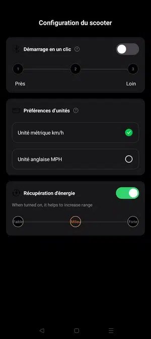 Cette application n'est pas aussi haut de gamme que la trottinette, et c'est bien dommage ! Il faut vraiment que Yadea améliore son application : où sont les statistiques de conduite ? Même pour connaître le kilométrage parcouru, ce n'est pas simple (si le smartphone utilise un thème sombre, la valeur est illisible - Pas de soucis avec un thème clair).