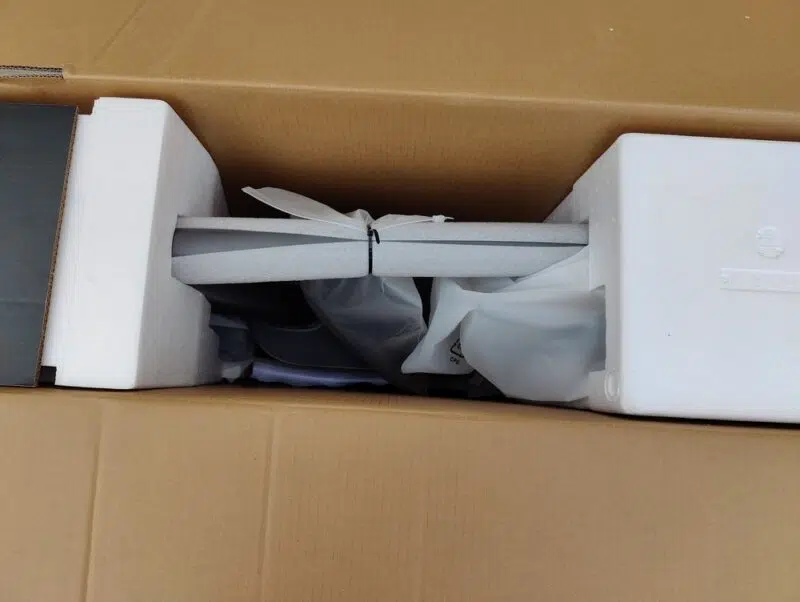 Contrairement à la fois précédente, cette fois-ci le carton Yadea est arrivé en parfait état ! D'ailleurs, le packaging est soigné puisque l'on a un aperçu du design de la trottinette ainsi que sur quelques caractéristiques importantes. A l'intérieur, la trottinette est bien protégée par des blocs de polystyrènes épais ainsi que diverses mousses de protection. Les accessoires sont rangés au sein de petites boites.