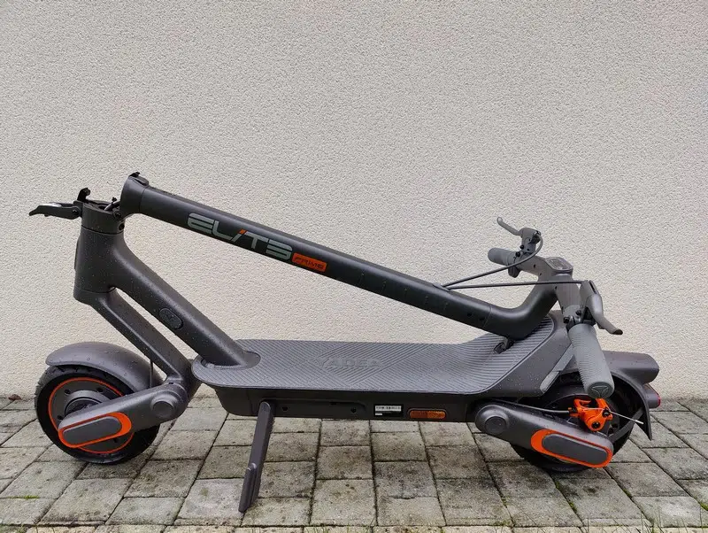 La balade est terminée, la trottinette peut être rangée au garage... Sachez qu'elle peut se replier mais ce sera difficile de la transporter ainsi : elle est bien trop lourde !