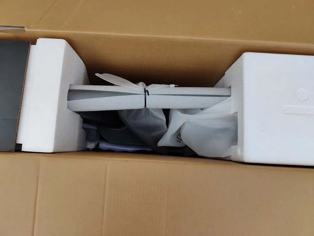 Contrairement à la fois précédente, cette fois-ci le carton Yadea est arrivé en parfait état ! D'ailleurs, le packaging est soigné puisque l'on a un aperçu du design de la trottinette ainsi que sur quelques caractéristiques importantes. A l'intérieur, la trottinette est bien protégée par des blocs de polystyrènes épais ainsi que diverses mousses de protection. Les accessoires sont rangés au sein de petites boites.