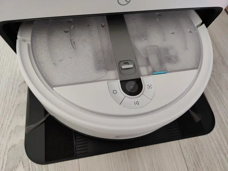 Terminons en parlant des deux réservoirs intégrés au robot : le réservoir à poussières est d'une capacité de 360 ml alors que le réservoir d'eau intégré au robot a une capacité de 1 litre (un réservoir de très grande capacité, donc).