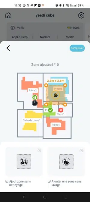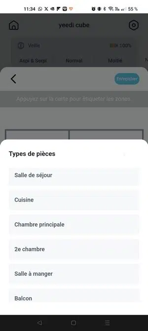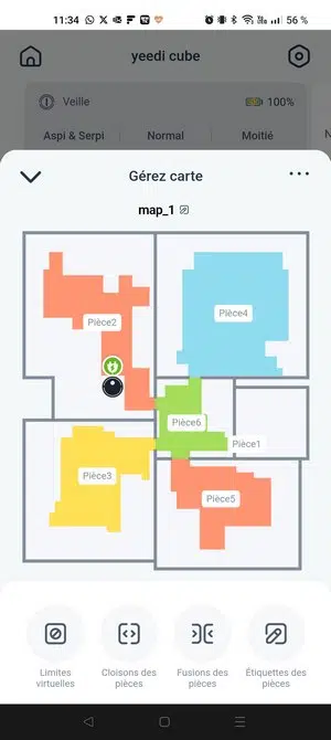 Pour finir sur l'application, nous allons parler de la cartographie. La carte générée et visible dans l'application yeedi est assez basique. Cependant, la carte générée correspond bien à mon logement, avec une bonne répartition des pièces, et il y a plusieurs fonctions importantes disponibles :