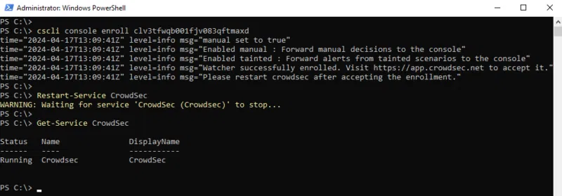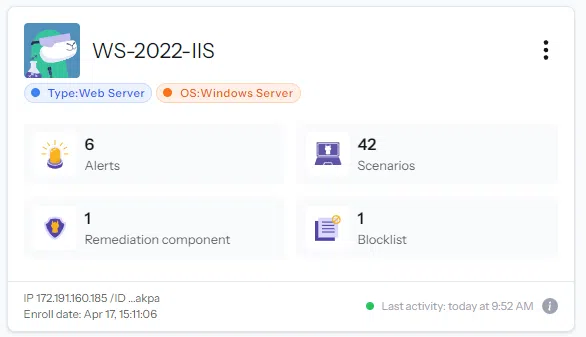 cscli console enroll clv3tfwqb001fjv083qftmaxd --name "WS-2022-IIS"