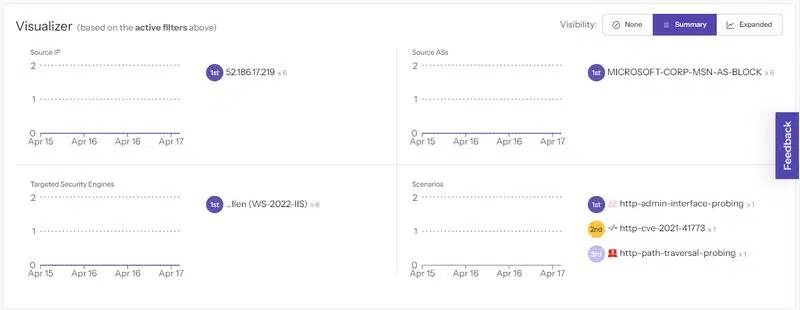 Ainsi, vous pouvez en apprendre davantage sur le profil des attaquants : adresses IP, pays d'origine, fournisseurs de service, niveau d'agressivité, type d'attaques, etc. Ceci étant lié à la Threat Intelligence évoquée ci-dessous.