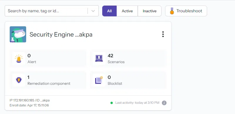 Désormais, l'instance CrowdSec déployée sur le serveur Windows Server est inscrite dans la console. Nous pourrions en ajouter d'autres sur le même principe.