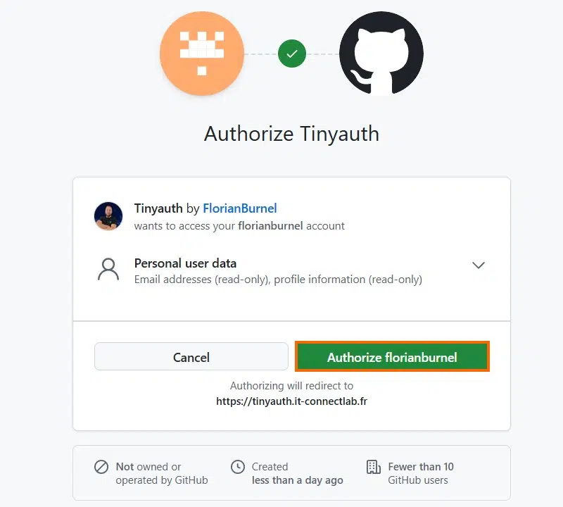 - Tinyauth entre en action si l'utilisateur :
