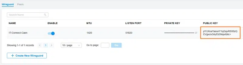 Une fois la configuration établie, copiez la clé publique car nous allons devoir la déclarer sur Omada et cliquez sur "Enregistrer".