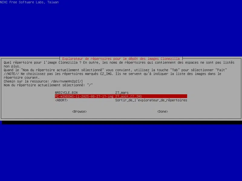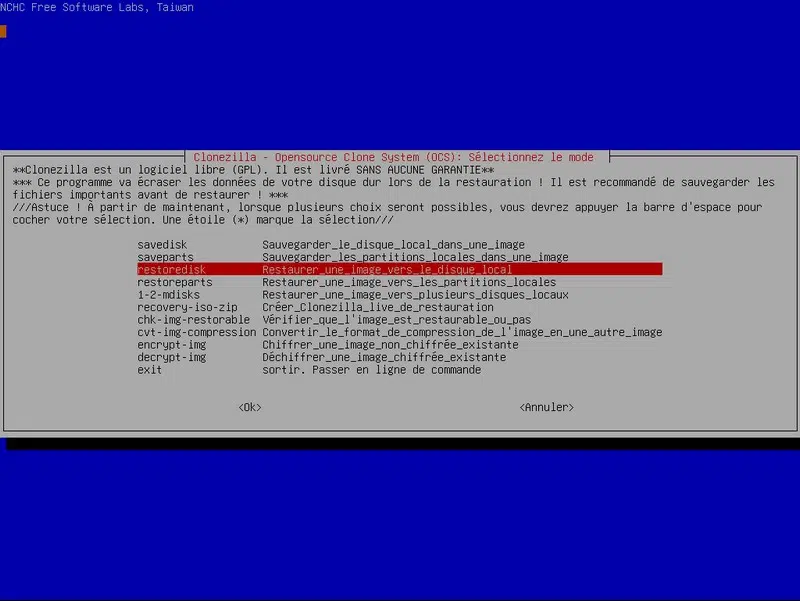 J’ai découvert récemment Rescuezilla qui sait gérer les images clonezilla. Il a l’avantage d’être en graphique pour ceux qui n’aiment pas l’interface « bleue »