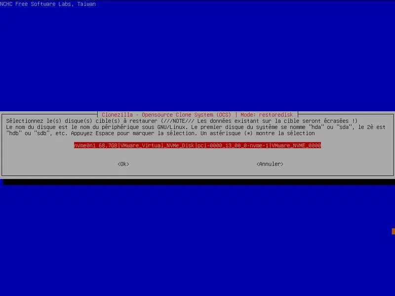 Vous devez ensuite sélectionner le disque sur lequel restaurer l'image.
