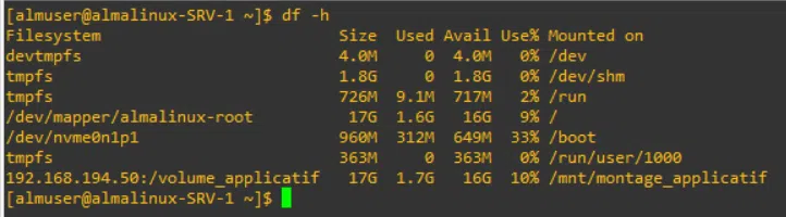 sudo mount -t glusterfs 192.168.1.50:/volume_applicatif /mnt/montage_applicatif