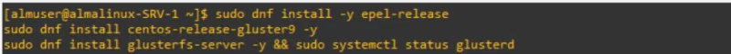 sudo dnf install glusterfs-server -y && sudo systemctl status glusterd