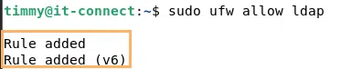 Nous allons utiliser « UFW » qui est un utilitaire simplifié pour configurer NetFilter. Pour autoriser le protocole LDAP (port 389/tcp) en entrée sur le serveur, tapez la commande suivante :