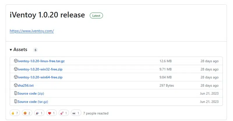 L'installation est vraiment simple ! Rendez-vous sur le GitHub officiel et téléchargez la dernière version correspondante à votre système d'exploitation. Ici, le fichier "iventoy-1.0.220-win64-free.zip" est téléchargé.