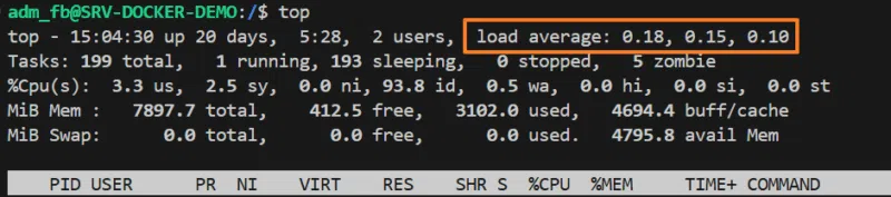 Si vous utilisez Linux, vous avez probablement déjà exécuté la commande top, et donc vous avez déjà vu une ligne comme celle-ci :