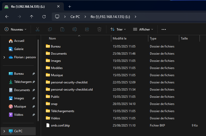 Nous avons désormais accès au partage distant ! Autrement dit, nous avons accès au profil de l'utilisateur flo depuis la machine Windows. Nous pouvons naviguer dans les documents, etc.