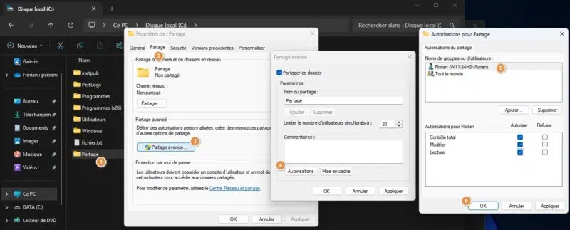 Pour cette démonstration, nous allons créer le dossier C:\Partage et le rendre accessible via le réseau.