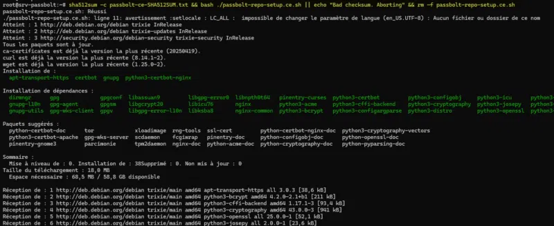 Puis, lancez la commande ci-dessous pour vérifier l'intégrité du script téléchargé. Si c'est OK, le script se lancera et il va ajouter le dépôt de Passbolt à votre machine. Le cache des paquets sera mis à jour dans la foulée.