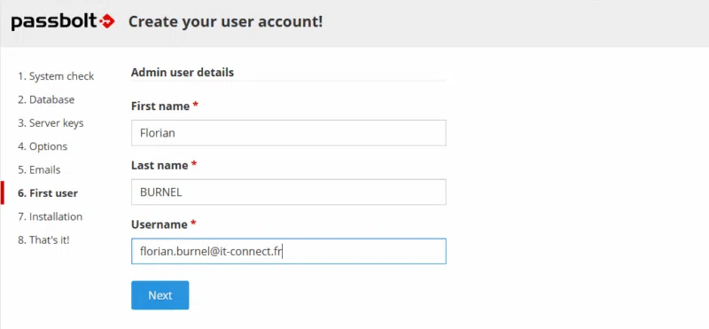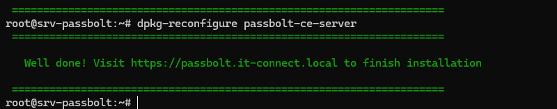 Poursuivez jusqu'à la fin. Voilà, l'installation du serveur Passbolt est terminée !