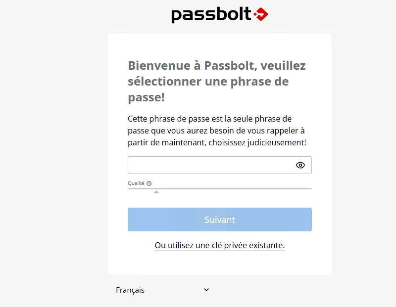 Vous devez spécifier le mot de passe maître de votre compte Passbolt. C'est la seule information que vous devez mémoriser et que vous ne devez surtout pas perdre !