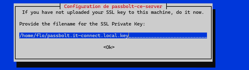 Ces fichiers doivent être stockés sur le serveur Passbolt. Vous pouvez effectuer la copie via scp ou WinSCP. En principe, la clé privée est déjà sur le serveur.