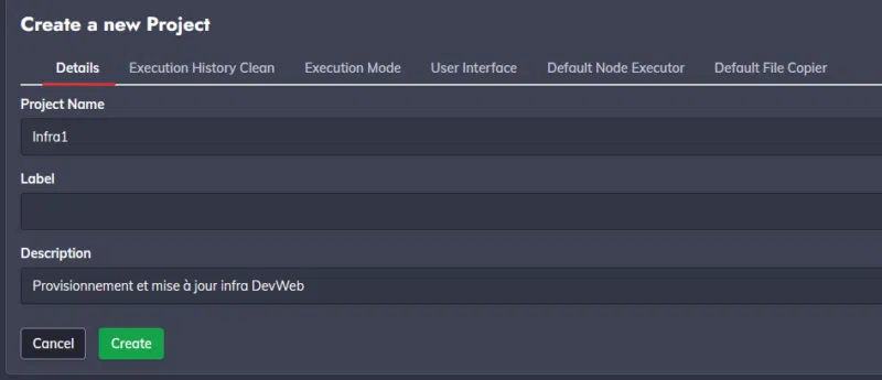 Rundeck fonctionne sous forme de projet. Chacun des projets peut avoir sa propre liste de nœuds, ses propres utilisateurs, se propres jobs, etc. L'avantage ici est donc de pouvoir scinder la gestion auprès de plusieurs équipes, ou pour des suivis ou projets clients différents par exemple.