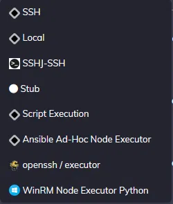 L'onglet "Default Node Executor" est relativement important. Le Node Executor est responsable de l'exécution des commandes et des scripts sur les nœuds distants. Vous devrez donc choisir quel "exécuteur" de commandes utiliser. Au choix, vous pourrez utiliser SSH, WinRM via python, SSHJ (pour Java) ou même Ansible ! Il est aussi possible d'utiliser son propre exécutable (Script Execution).