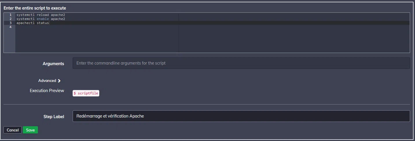 - Script vous permet d'écrire directement dans Rundeck un script qui sera exécuté sur la machine distante