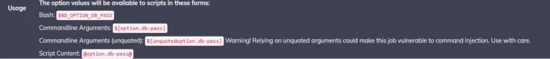 Comme je vais l'utiliser dans un script, je vais appeler mon mot de passe avec "@option.db-pass@" et Rundeck passera au script la valeur renseignée au moment où je lance le job. Sauvegardez l'option, et ajoutez une étape au job sous forme de script.