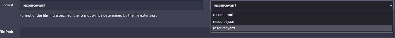 Je choisis un fichier local, je clique donc sur "File" et choisis le format YAML dans la liste déroulante (vous n'êtes pas obligé bien entendu).