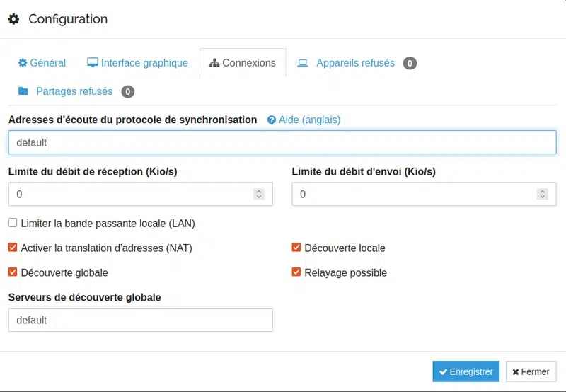 Dans la configuration de Syncthing, il y a d'ailleurs la possibilité de désactiver la découverte, que ce soit au niveau local ou global (il y a des serveurs de découverte externes utilisés par Syncthing).