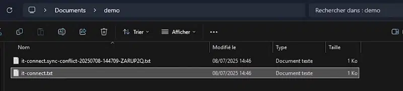 Je vous invite, avant de continuer, à déposer quelques fichiers dans le répertoire C:\IT-Connect pour tester la synchronisation par la suite.