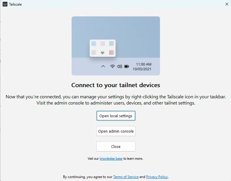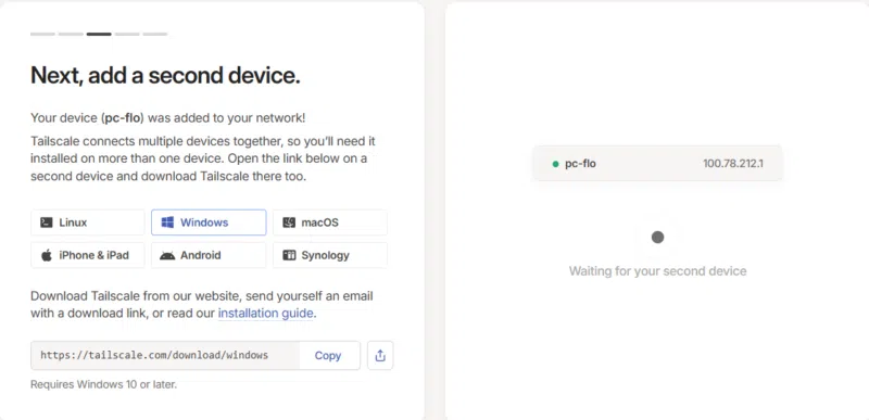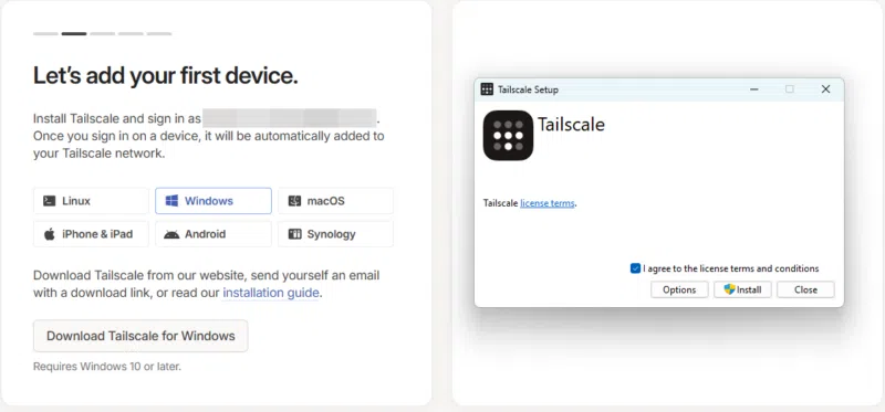 L'installation s'effectue en quelques clics, il n'y a rien de spécial à faire. L'essentiel étant de se connecter sur le client Tailscale avec le même compte que celui associé au réseau.
