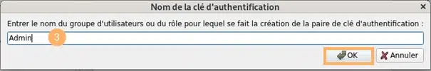 Lors de la création d’une paire de clés d’authentification, Veyon demande de saisir un nom pour associer la clé à un rôle ou un groupe.