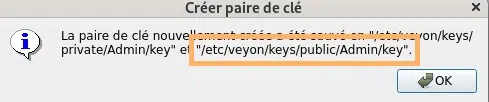 Une fois validé, Veyon crée la paire de clés et indique le dossier dans lequel elles ont été enregistrées.