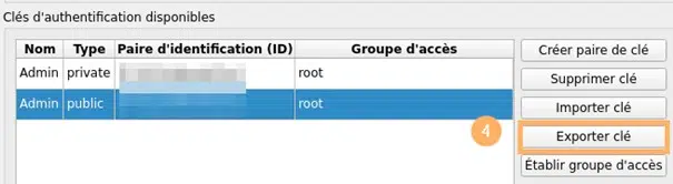 Sélectionnez la clé publique et cliquez sur « Exporter clé ».