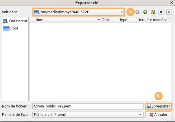 Enregistrez ensuite la clé publique dans une clé USB ou un partage accessible par les postes étudiants. Dans le cas présent, l’enregistrement s’est fait sur une clé USB.