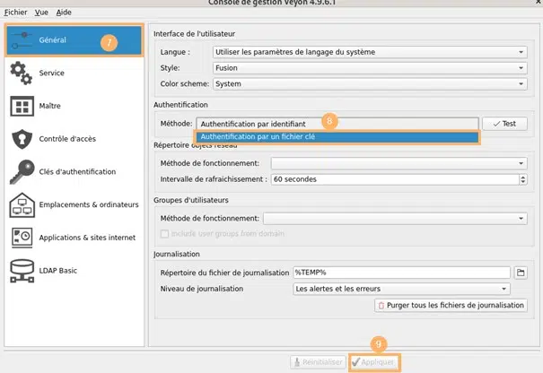 Pour cela, allez dans l’onglet « Général », puis sélectionnez « Authentification par un fichier clé » et appliquez les modifications.