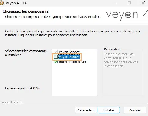 Sur les postes étudiants, l’installation du service Veyon est similaire à celle du poste enseignant. La seule différence est que le composant « Veyon Master », destiné à la supervision, ne doit pas être installé.