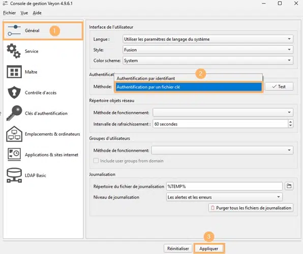 Il est nécessaire d’indiquer à Veyon Master que l’authentification ne se fait plus par identifiant, mais par les clés d’authentification précédemment générées.