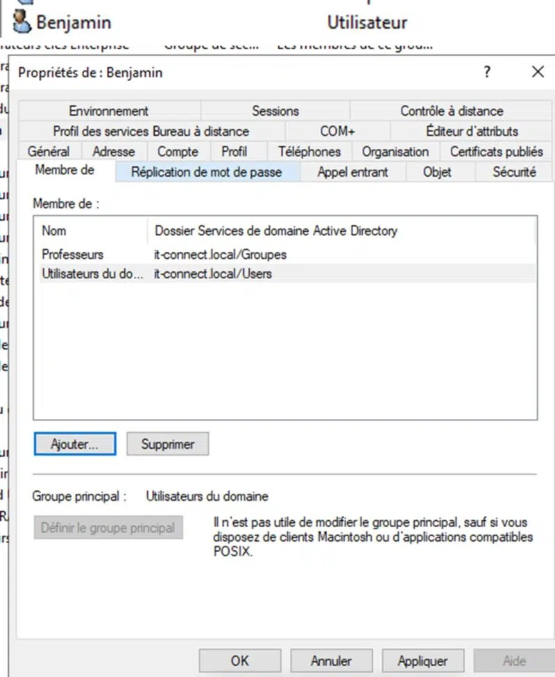 Ajoutez ensuite les groupes précédemment créés aux comptes des utilisateurs.