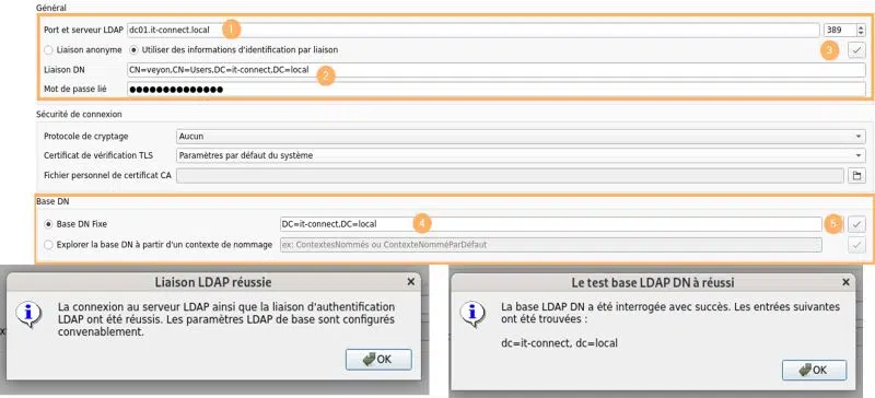 Ici, la Base DN peut également pointer vers une OU spécifique (ou une sous-OU) selon la structure de votre Active Directory.