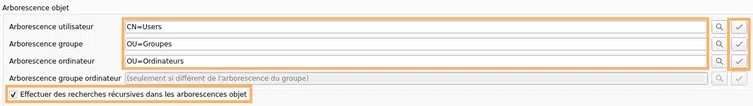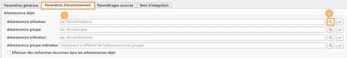 Il faut utiliser l’icône loupe pour parcourir l’annuaire LDAP et sélectionner directement l’OU ou le conteneur souhaité.