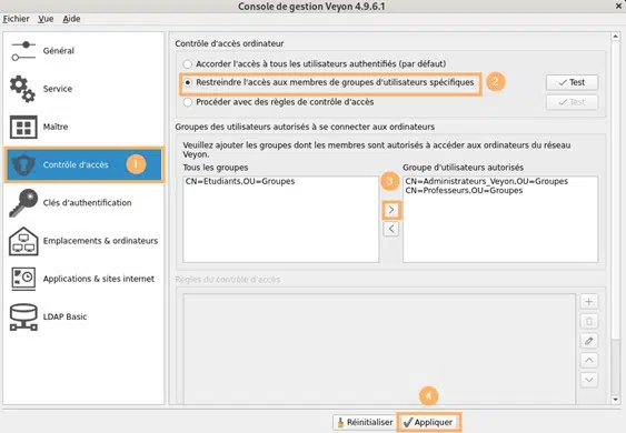 Pour terminer la configuration LDAP, ouvrez l’onglet « Contrôle d’accès » :