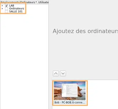 Une fois connecté, cochez l’emplacement souhaité afin d’afficher les ordinateurs de la salle correspondante.
